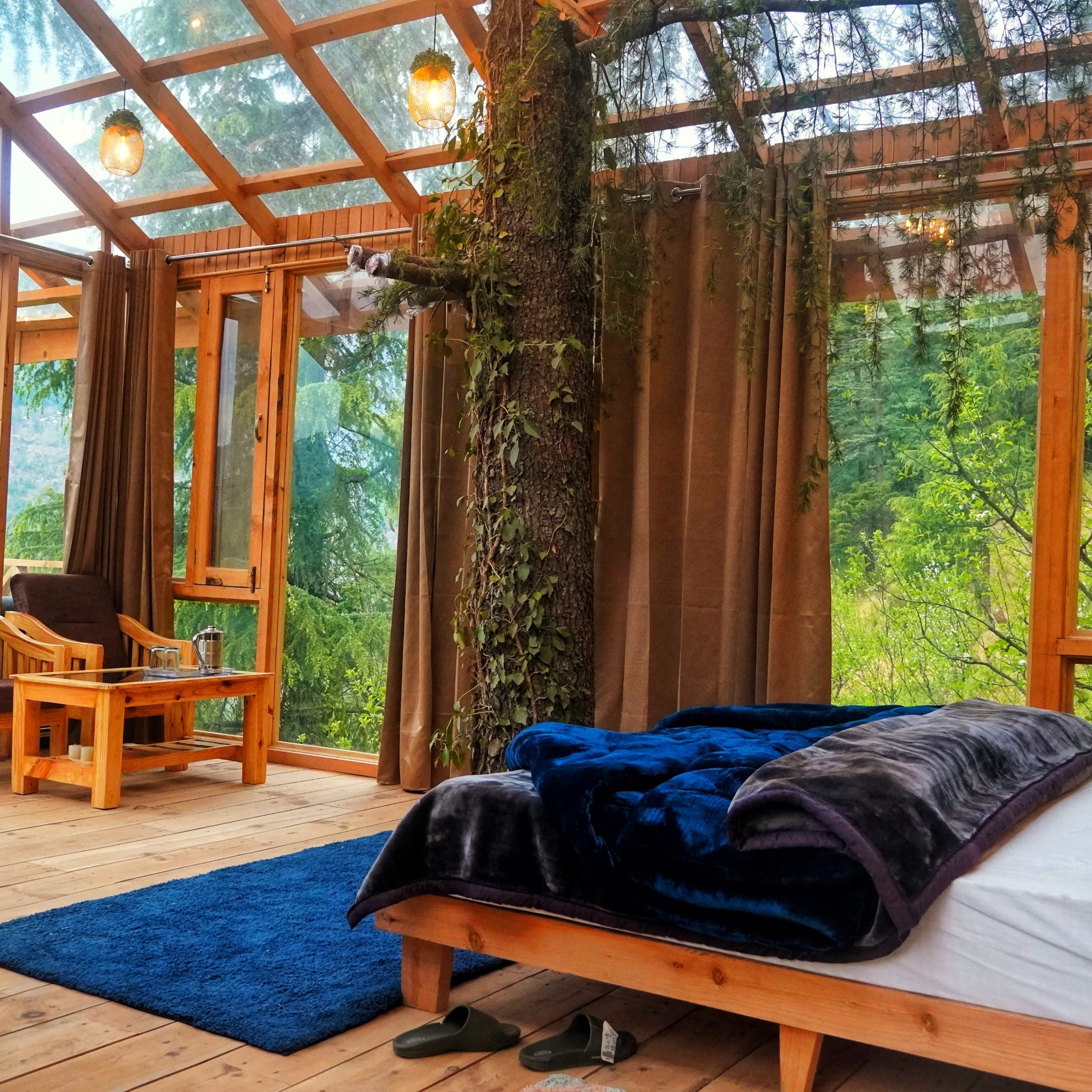 The stay features beautifully designed duplex cottages, a unique stargazing treehouse, and a spacious family cottage—making it perfect for couples, families, and groups. With forest trails, waterfalls, meadows, and temples nearby, this retreat blends comfort with immersive nature experiences.